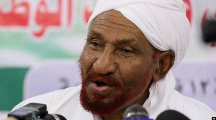 গণতান্ত্রিক ভাবে নির্বাচিত সুদানের শেষ প্রধানমন্ত্রী সাদিক আল মাহদি ৮৪ বছর বয়সে মারা গেছেন। তাঁর জাতীয় উম্মা পার্টি আজ এক বিবৃতিতে জানিয়েছে যে, সংযুক্ত আরব আমিরাতে তিন সপ্তাহ ধরে হাসপাতালে
