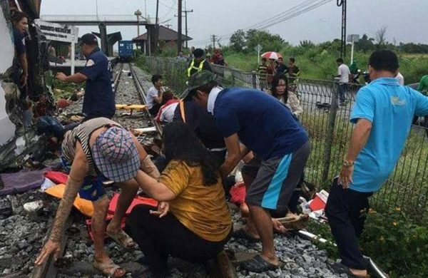 থাইল্যান্ডে ট্রেনের ধাক্কায় বাসের অন্তত ১৭ জন যাত্রীর নিহত হয়েছে। রোববার সকালের দিকে এই দুর্ঘটনায় ৩০ জনের বেশি আহত হয়েছে। দেশটির সরকারি কর্মকর্তাদের বরাত দিয়ে এ তথ্য জানিয়েছে বার্তা সংস্থা