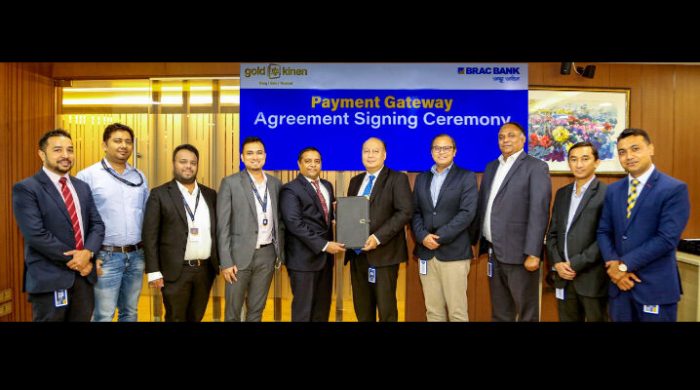 ঢাকা, সোমবার, ১০ জুলাই ২০২৩: ‘গোল্ড কিনেন টেকনোলজিস লিমিটেড’-এর সাথে পেমেন্ট গেটওয়ে চুক্তি স্বাক্ষর করেছে ব্র্যাক ব্যাংক। দেশের প্রথম হলমার্ক করা সার্টিফাইড ২২ ক্যারেট গোল্ড কেনা, বিক্রি এবং স্টোরেজের জন্য