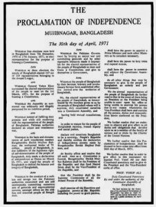 ড. কামাল হোসেন আরও পরিষ্কার করে বলেন—Proclamation of Independence ছিল বাংলাদেশের প্রথম সাংবিধানিক দলিল, যা সংবিধানেরও পূর্ববর্তী একটি legal instrument। এটি কোনো বিদেশি শক্তির চাপিয়ে দেওয়া নথি নয়; বরং পাকিস্তানি সামরিক আগ্রাসন, নির্বাচনী রায় উপেক্ষা এবং গণহত্যার প্রেক্ষাপটে একটি অনিবার্য আইনি ঘোষণা।
