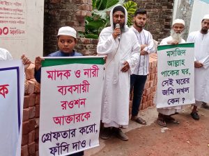 (তারিখ: ২৯ মার্চ, ২০২৬ ইং) রাজধানীর রাজারবাগ কদমতলায় চিহ্নিত সন্ত্রাসী ও ভূমিদস্যু রওশন আক্তার কর্তৃক পবিত্র মসজিদের জমি দখলের অবৈধ চেষ্টার প্রতিবাদে মুসল্লীদের মানববন্ধন অনুষ্ঠিত হয়।