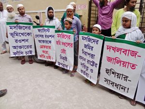 সমাবেশে মুসল্লিরা বলেন, মুহাম্মদিয়া জামিয়া শরীফ কমপ্লেক্স জামে মসজিদটি ১৯৯৮ সালে প্রতিষ্ঠিত হয়। মরহুম হারুনুর রশীদ খান (সাবেক জেলা জজ), মরহুমা আঞ্জুমানারা বেগম এবং সুরাইয়া চৌধুরী মসজিদের জমিটি দান করেন এবং দখল বুঝিয়ে দেন, যার বৈধ দলিল মসজিদ কমিটির কাছে সংরক্ষিত আছে। কিন্তু একটি চক্র দলিল বাতিলের মামলা দায়ের করে এবং জাল-জালিয়াতির মাধ্যমে মসজিদের জমি একটি ভূমিদস্যু গ্রুপের কাছে বিক্রি করে দেয়। পরবর্তীতে সেই মামলা আদালত খারিজ করে দেওয়া সত্ত্বেও ভূমিদস্যু গ্রুপের দৃষ্টি সেখান থেকে সরেনি। তারা বারবার মসজিদের জমি অবৈধভাবে দখলের অপচেষ্টা চালায়।